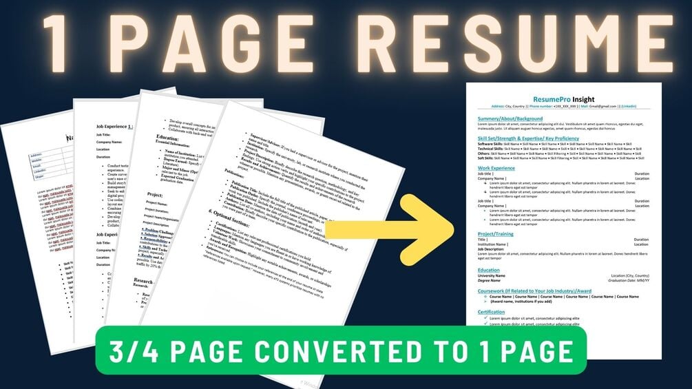 One Page Resume Template Download *Docx File access *Pdf Format *Word File